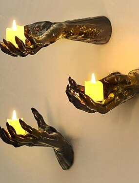 3-pakning halloween veggmontert skumle hender som rekker ut med tente lys for gotisk veggdekorasjon innendørs gotisk dekor