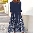 Dame Midikjole Skiftkjole Uformell kjole Grunnleggende Daglig utendørs Feriereise Normal Blomstret Ditsy Floral 3/4 ermer Crew-hals Navyblå Sommer Vår |