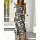 Dame Midikjole Floral kjole Boho-kjole Print kjole Mote Klassisk utendørs Feriereise Ferie Normal Blomsternål i krystall Ermeløs Spagettistropper Rosa Navyblå Oransje Sommer |