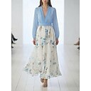 Dame Lang kjole Maxikjole Uformell kjole Chiffonkjoler Floral kjole Elegant Mote Romantikk utendørs Ferie Stevnemøte Normal Blomsternål i krystall Langermet V-hals Blå Hvit Sommer Vår |