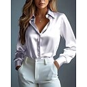 Dame Sateng skjorte Dresskjorter Arbeidsskjorter Bluse Helfarge عادي Elegant Stilfull Grunnleggende Langermet Aftæpning Skjortekrage Vanlige topper Arbeid Festkveldsklær Date Night antrekk Blå Hvit |