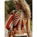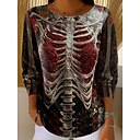 Dame Genser Sjarmerende Gateklær Uformell Grafikk Skelet Crew Neck Lappestrikket Langermet Vanlige Topper Strikk Rød Høst Vinter |