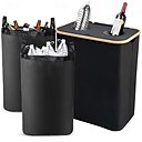 Resirkuleringsbøtte av oxfordstoff med doble hull, 140 l skittentøyskurv med bambusramme, lokk og 2 innerposer i polyester, sammenleggbar beholder for innendørs søppel og resirkulering |