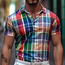 Herre Ruter Poloskjorter Golf skjorte Kortermet Poloskjorter Skjorter med krage Fritid Ferieklær Formell klær Festivalklær Knapper 3D-utskrift Gul Rød Grønn |