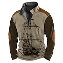 Herre Seilbåter Zip Polo Langermet Poloskjorter Aftæpning Glidelås Årgang utendørs Fritid / hverdag Gateklær 3D Trykt mønster Høst vinter Svart Blå Brun |