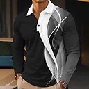 Herre Stripet Golf poloskjorter Langermet Poloskjorter Krage Business Casual Formell Feriereise Hverdag Knapper 3D-utskrift Vår Høst Vinter Svart |