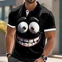 Herre Morsomt tegneserieansikt Polo Kortermet Poloskjorter Knaphul Fritid Morsom Gate Gave treningsklær Ferie 3D-utskrift Knapper Sommer Svart Hvit Blå |
