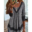 Dame Store størrelser T skjorte Knapper Flytende tunika Fargeblokk Grunnleggende Langermet V-hals Lange topper Avslappet Helg Blå Oransje Grønn Grå Høst vinter |