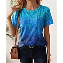 Dame T skjorte Trykt mønster Blomstret Fritid Kortermet Rund hals Vanlige topper Daglig Blå Svart Hvit Lysegrønn Lilla Sommer |