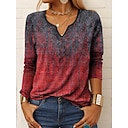 Dame T skjorte Trykt mønster Grafisk Geometrisk Abstrakt Årgang Stilfull Moderne Langermet Hals med hakk Vanlige topper Daglig Helg Blå Rosa Vin Rød Oransje Vår Høst |