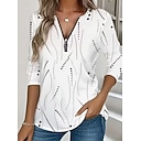 Dame T skjorte Glidelås Trykt mønster Grafisk Geometrisk Årgang Mote Stilfull Langermet Crew-hals V-hals Vanlige topper Daglig Blå Hvit Gul Rosa Rød Vår Høst Vinter |
