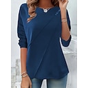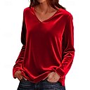 Dame T skjorte Lapper Helfarge عادي Elegant Årgang Mote Langermet V-hals Vanlige topper Daglig Ut på byen Helg Sølv Rosa Vin Rød Marineblå Høst Vinter |