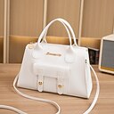 Hvit dameveske i kunstskinn med håndtak på toppen og spennedetalj foran – elegant strukturert veske til kontor, reise og daglig bruk |