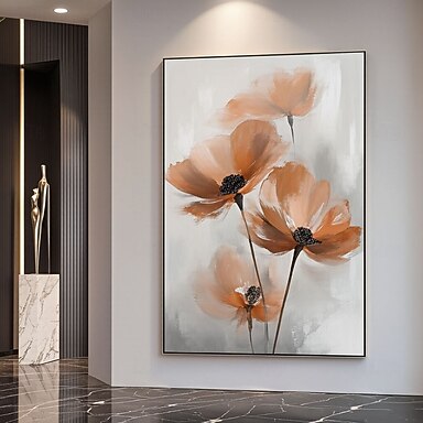 håndlaget abstrakt design stor blomsterveggkunst beige livlige valmuer subtile blomster blomsterveggkunstdekor beige tradisjonell lerretsveggkunst
