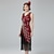 De livlige 20-årene 1920-tallet Knelengde Kort Lengde Flapper kjole Illusjon Korte ermer Den store Gatsby Bryllupsgjest Paljetter Paljetter V-hals Kostyme Dame Karneval Maskerade Aftenselskap