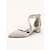 Brudepikesko til dame – hvite pumps med spiss tå og lav blokkhæl, kryssreim og ankelreim med lukket tå til kjoler, til brudefølget, skoleball, kveld, cocktail, formelt