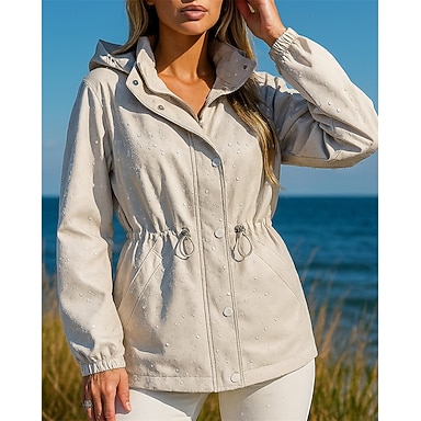 Dame Vattert jakke Bekvem Pustende Glidelås Lomme Pelskrage Fritid عادي Feriereise Gate Avslappet Dagligdagstøy Glidelås Normal Med hette Normal Langermet Yttertøy Svart Vin Rød Vår Høst