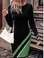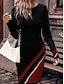Dame Midikjole Tubekjole Fritid Daglig Normal Geometrisk Langermet Crew-hals Svart Rød Grønn Vår Høst
