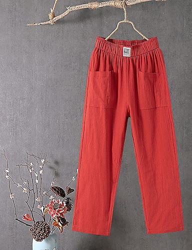 Dame Linbukser i bomull Frekk kinesisk Ferie Gatemote Grunnleggende Full lengde Middels midje عادي Lomme Elastisk midje comfy Komfort Elastisk Daglig utendørs Gate Vinrød Mørkegrå Hvit Mørk Navy