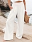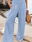 Dame Linbukser i bomull Bred Bukseben Bukser Posete bukser Ferie Mote Grunnleggende Full lengde Naturlig عادي Lomme Elastisk midje Komfort Hurtigtørkende Myk Uelastisk Gateklær Strand Ferie Blå Hvit
