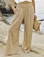 Dame Linbukser i bomull Bred Bukseben Bukser Uformelle bukser Ferie Mote Gatemote Full lengde Høy Midje عادي Elastisk midje Bekvem Uelastisk Daglig Ferie Ut på byen Beige Vår Høst Løstsittende