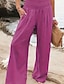Dame Linbukser i bomull Bred Bukseben kinesisk Bukser Ferie Gatemote Grunnleggende Full lengde Middels midje عادي Lomme Elastisk midje comfy Komfort Mikroelastisk utendørs Feriereise Gate Vinrød Gr