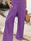 Dame Linbukser i bomull Frekk kinesisk Ferie Gatemote Fritid Full lengde Middels midje Helfarge Lomme Elastisk midje Komfort Bekvem Pustende Mikroelastisk Daglig utendørs Gate Lilla Svart Hvit