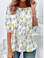 Kvinne T-skjorte Crew Neck Langermet Tunika Blomster Grafisk Uformell Vanlige Topper Daglig Trykk Gul Vår Høst