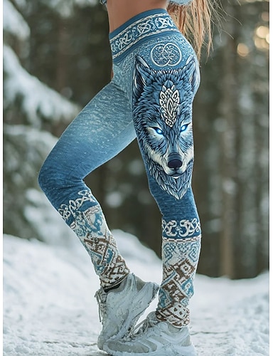 Kvinners Viking Boho Leggings Ferie Vintage Etnisk Stil Full Length Høy Midje Grafisk Dyr Hurtigtørking Pusteevne Myk Elastisk Formell Ferie Svart Rosa Blå Grå Sommer Vår Høst Vinter