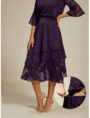 Dame Midikjole Chiffonkjoler Elegant Helfarge 3/4 ermer Crew-hals Lilla