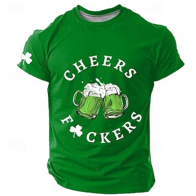 St. Patricks Dag Menns Grønn T-skjorte Utsett Morsom Sprell Og Villerier Morsom Irsk Shamrock Grafisk Kortermet Tee Ferieparty Uformell Topp Klær S M L XL XXL XXXL