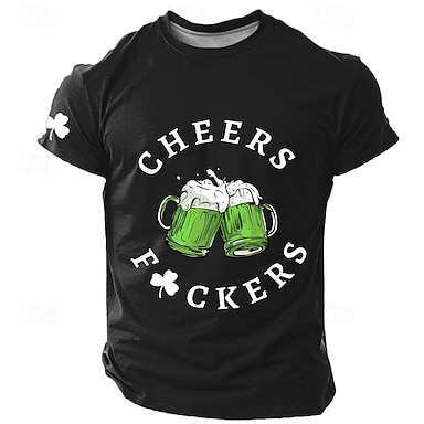 St Patricks dag Tid noen Rampestreker T-skjorte Morsom Irsk Kløver Grafisk Tee Mænd Grønn Hvit Oransje Høytidsfest Svart Top Klær Bekledning S M L XL XXL XXXL