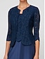 Women's Jacket Blazer Lace Glitter Floral Elegant 3/4 Length Sleeve Crew Neck Evening Party Navy Blue Summer Spring Fall