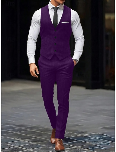 Men's Vest Gilet Wedding Smart Casual Polyester Geometric V Neck Skinny Red Purple Gold Vest