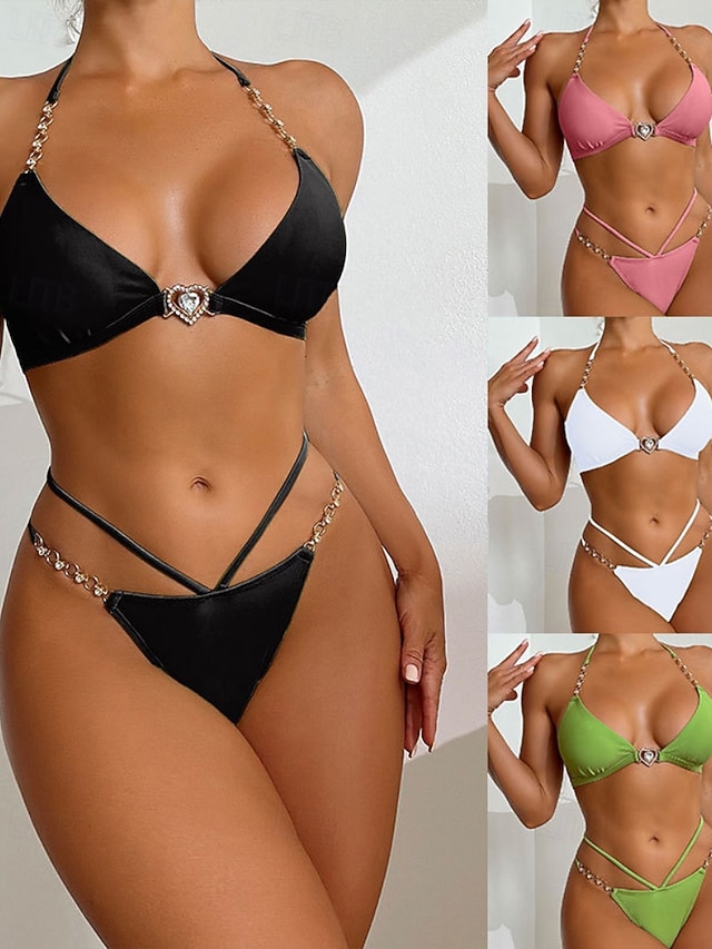 Women's Swimwear 2 Piece Cheeky Swimsuit Backless Vacation Beach Wear Solid Color Halter Neck Sleeveless Bathing Suits #14508254
