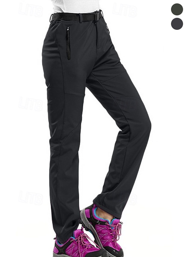 Women's Hiking Pants Trousers Fleece Lined Pants Winter Coat Softshell Pants Winter Autumn / Fall Outdoor Thermal Warm Fleece Lining Windproof Multi-Pockets Pants / Trousers Bottoms Black Army Green #8348225