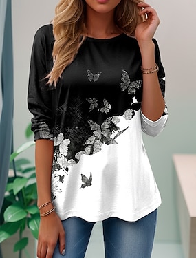Damskie Podkoszulek Nadruk Graficzny Zwierzę Zabytkowe Elegancki Klasyczny Krótki rękaw Półgolf Zwykłe topy Codzienny Weekend Niebieski Biały Fioletowy Zielony Khaki Lato Wiosna