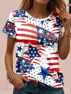 Dzień Niepodległości Amerykański Rocznica Patrioty Kobiecym T-shircie Graficznym Flagą Literą Vintage Mody Stylowym Krótkim Rękawie Okrągłym Dekolcie Codziennym Weekendowym Nadrukiem