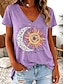 Damskie Podkoszulek Nadruk Kwiaty Codzienny Krótki rękaw Okrągły dekolt Zwykłe topy Codzienny Niebieski Czarny Biały Jasnozielony Fioletowy Lato