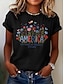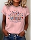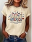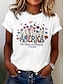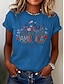 Amerykański Dzień Niepodległości Damskie Podkoszulek Nadruk Kwiaty Graficzny Flaga Elegancki Klasyczny Codzienny Krótki rękaw Półgolf Okrągły dekolt Zwykłe topy Codzienny Niebieski Czarny Biały