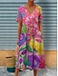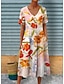Damskie Sukienka midi Sukienka trapezowa Urlop Codzienny Boho Regularny Kwiaty Graficzny Krótki rękaw W serek Fuksja Pomarańczowy Lato Wiosna