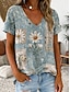 Damskie Podkoszulek Nadruk Kwiaty Graficzny Rośliny Zabytkowe Elegancki Klasyczny Krótki rękaw W serek Długie topy Codzienny Weekend Niebieski Biały Żółty Ciemnozielony Brudny błękit Lato Wiosna