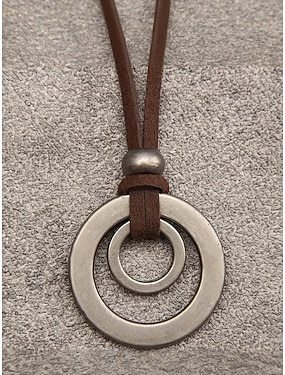 Męski regulowany naszyjnik ze skórzanego sznurka z zawieszką w kształcie podwójnego koła – biżuteria w stylu vintage, idealna na co dzień i do noszenia na świeżym powietrzu