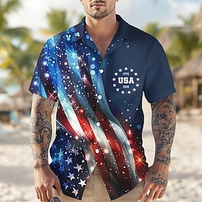 Męskie 4 lipca 250. rocznica powstania Stanów Zjednoczonych Flaga USA My ludzie Koszula Zapinana na guziki koszula Krótki rękaw Patriotyczny Na zewnątrz Święto Lato Wiosna Wieczorne Druk 3D koszule z