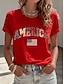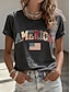 Amerykański Dzień Niepodległości Damskie Podkoszulek Nadruk Graficzny Flaga Elegancki Klasyczny Codzienny Krótki rękaw Półgolf Okrągły dekolt Zwykłe topy Codzienny Niebieski Czarny Czerwony Lato