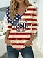 Koszulka damska z nadrukiem na Dzień Niepodległości Amerykańskiej Rocznicy Patriotycznej Stylowa Klasyczna Krótki rękaw V-kształtny Regularne Top Daily Niebieski Czarny Biały Czerwony Lato Wiosna