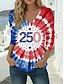 Amerykański Dzień Niepodległości Damskie Podkoszulek Koszulka Nadruk Graficzny Flaga Ameryki Elegancki Klasyczny Codzienny Długi rękaw W serek Zwykłe topy Codzienny Biały Czerwony Khaki Wiosna Jesień