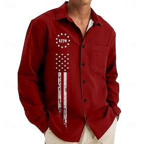 Męskie Amerykańska flaga USA Patriotyczny Koszula Koszula westernowa Długi rękaw Vintage Retro Codzienny Święto Odzież robocza Wiosna Jesień Wieczorne Dwie kieszenie z przodu Koszula z lnu Koszule