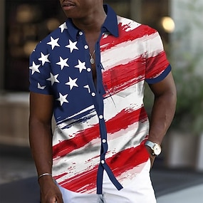 Dzień Niepodległości Męskie Amerykańska flaga USA 4 lipca 250. rocznica powstania Stanów Zjednoczonych Patriotyczny Koszula Letnia koszula Zapinana na guziki koszula Krótki rękaw Moda na co dzień