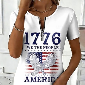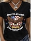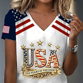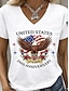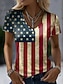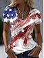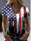 Amerykański Dzień Niepodległości Damskie Podkoszulek Nadruk Graficzny Flaga Zabytkowe Elegancki Klasyczny Krótki rękaw W serek Zwykłe topy Codzienny Czarny Biały Khaki Lato Wiosna